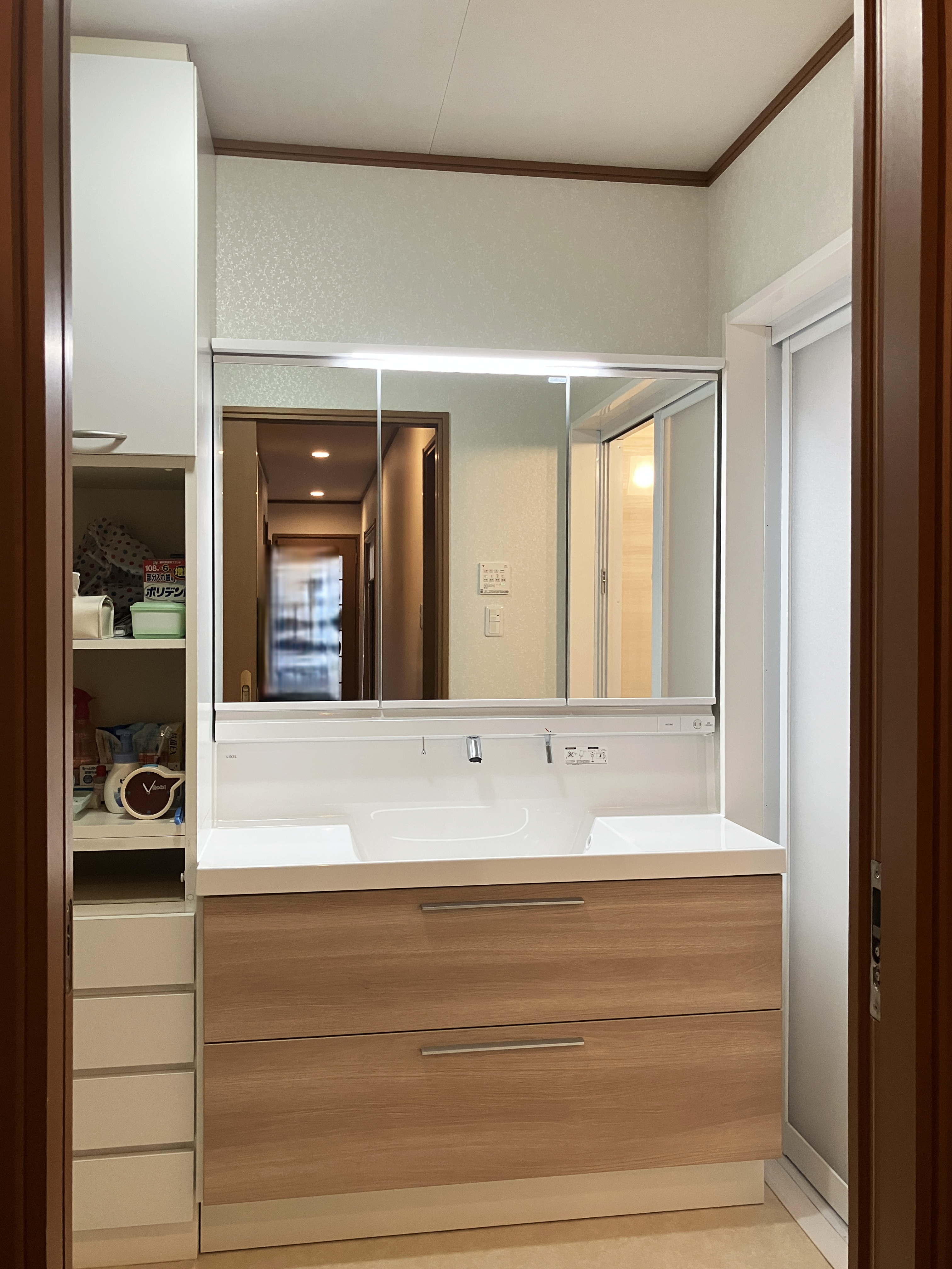 ・古くなった洗面化粧台を取り替え、LIXIL「クレヴィ」を設置しました。